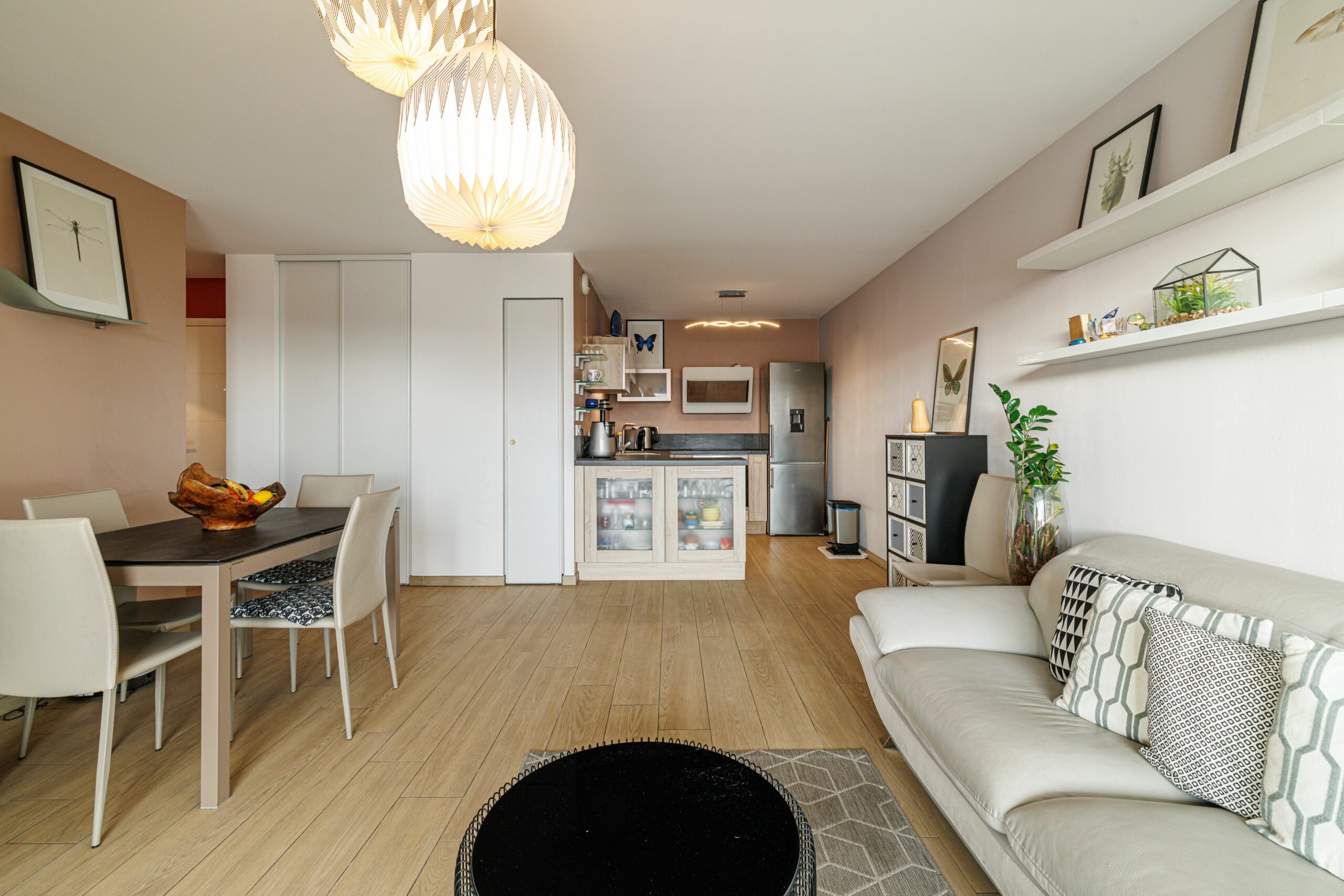 Il se compose d’un agréable séjour lumineux avec cuisine américaine entièrement équipée, de deux belles chambres, ainsi que d’une salle d’eau avec WC.