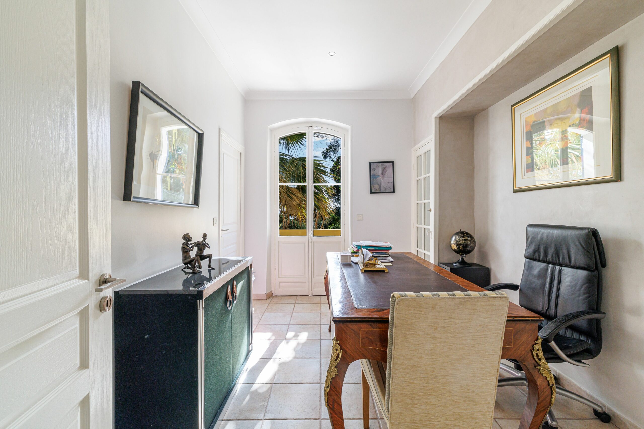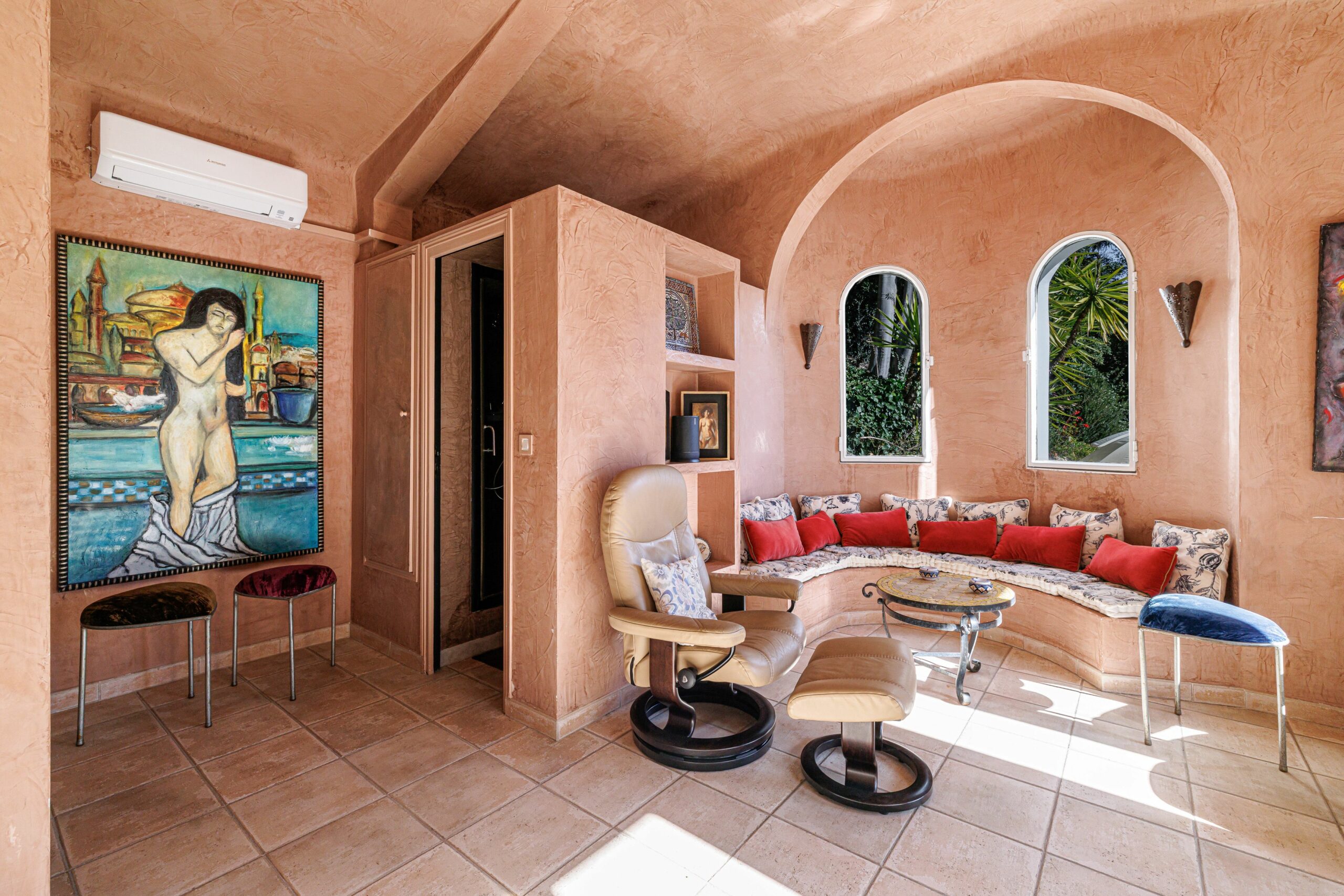 La piscine chauffée (10 x 4,5 m), parfaitement intégrée dans cet environnement d’exception, bénéficie d’un ensoleillement optimal et d’une vue mer apaisante. L’ancienne chapelle, subtilement réaménagée en élégant salon d’hiver, accueille également un hammam.