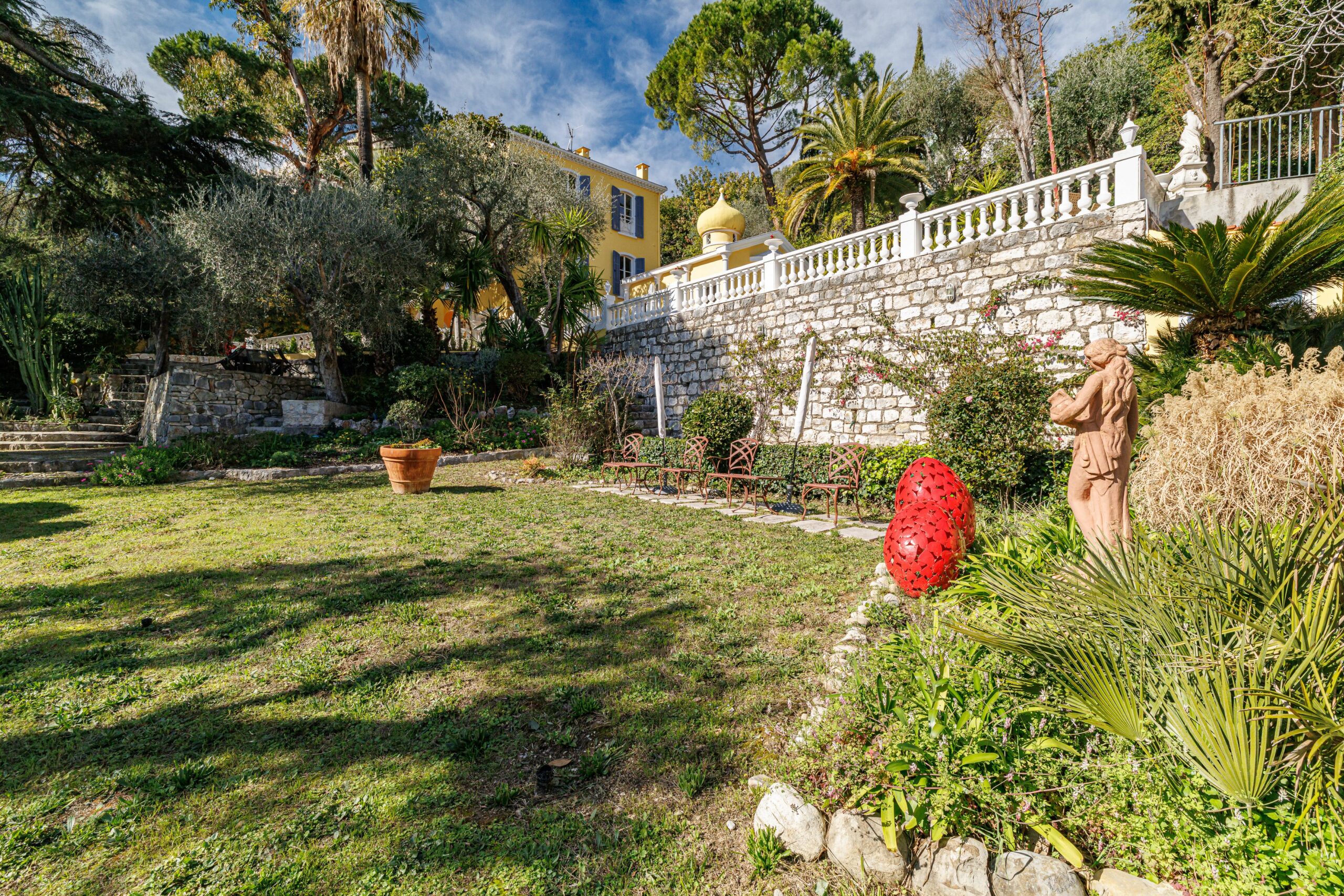 Édifiée au début du XXᵉ siècle, la villa s’inscrit au cœur d’un somptueux parc paysager de 3.300 m², classé « Jardin Remarquable » par la Ville de Nice, avec un écrin végétal d’une beauté saisissante : une vingtaine d’oliviers centenaires, deux majestueux cèdres du Liban, avocatiers, néfliers, orangers, magnolias…