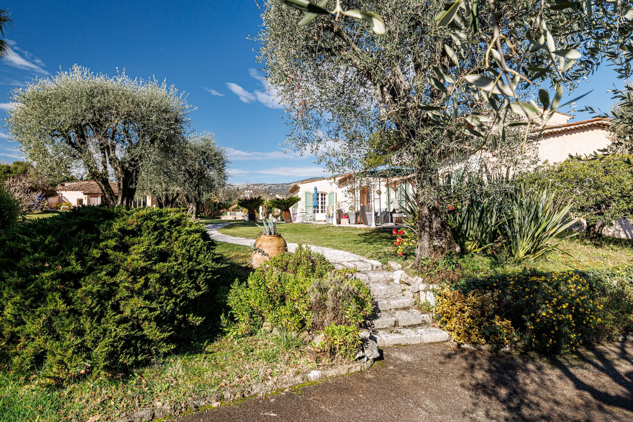 À seulement 15 minutes de l’aéroport international de Nice, au cœur d’un environnement calme et privilégié, découvrez cette superbe propriété implantée sur un terrain paysagé d’environ 3 900 m², agrémenté d’oliviers et offrant une vue dégagée sur les collines environnantes et le Baou de Saint-Jeannet.