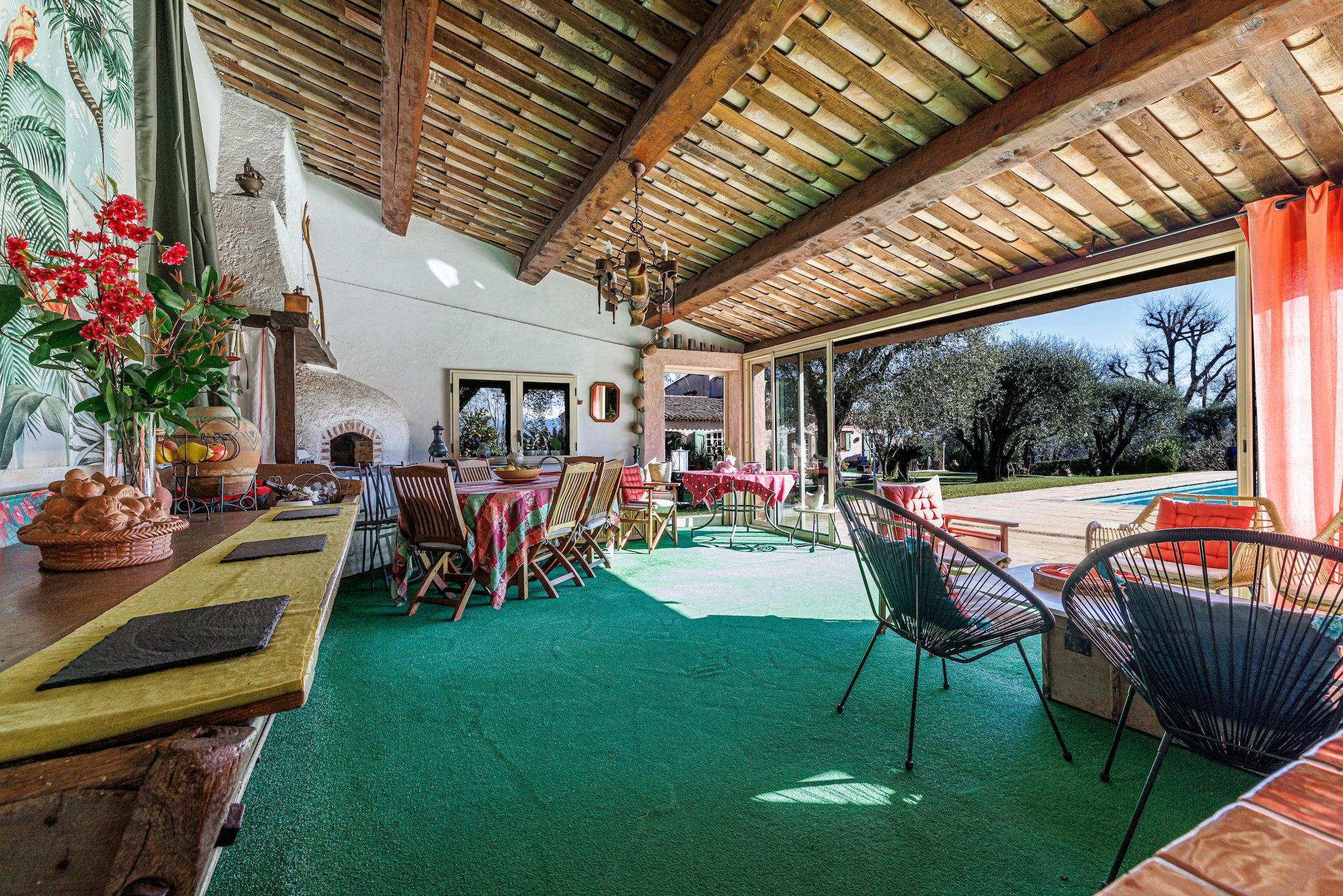 Toutes les pièces ouvrent sur les terrasses et le jardin, avec de superbes vues sur la nature et la piscine.