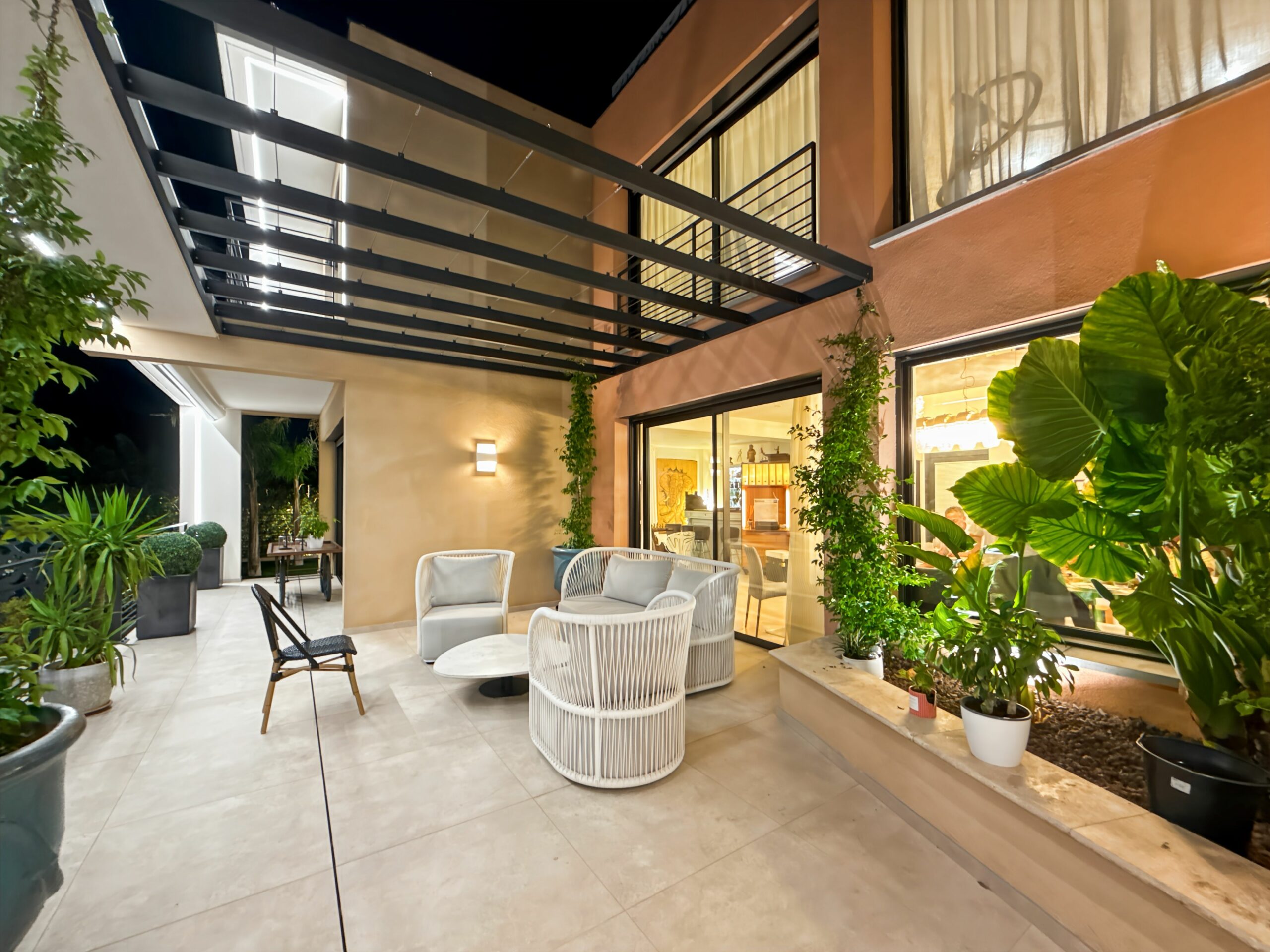 À l’extérieur, un jardin paysager soigneusement entretenu encadre une superbe piscine à débordement, invitant à la détente.