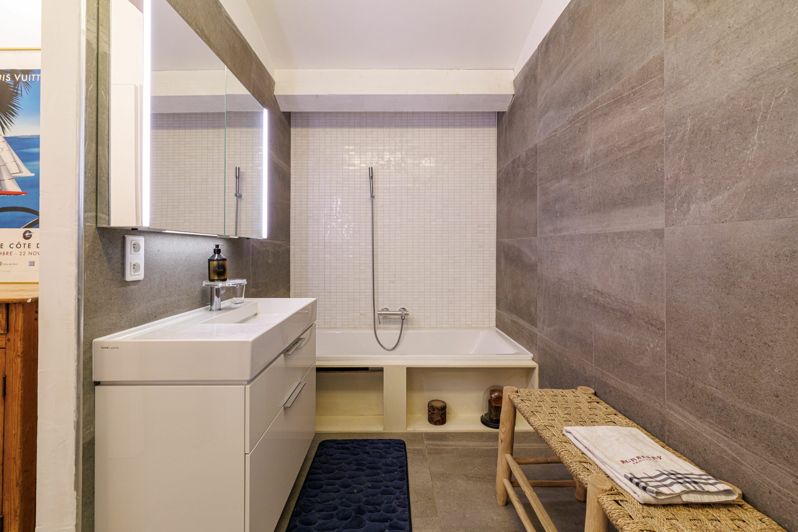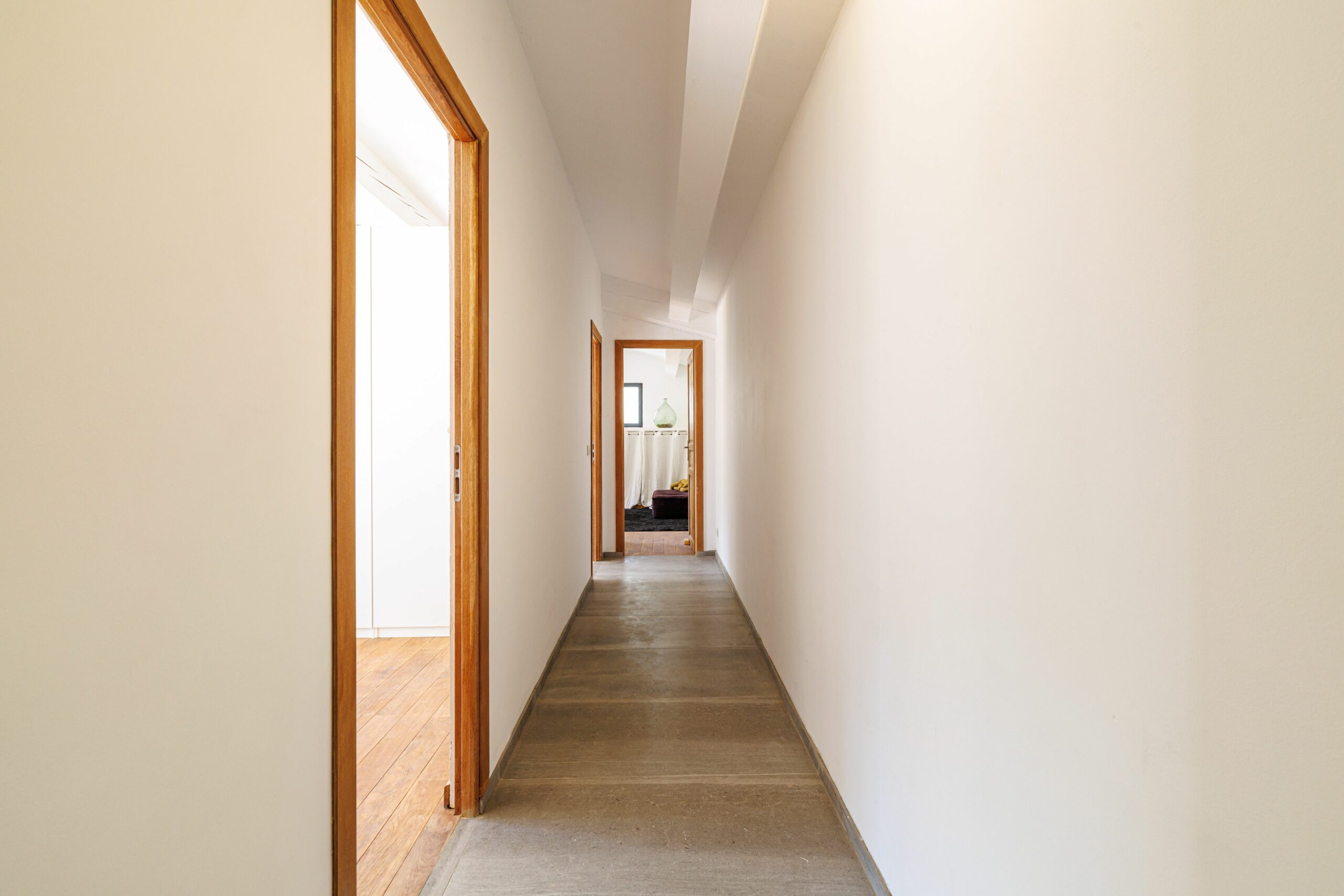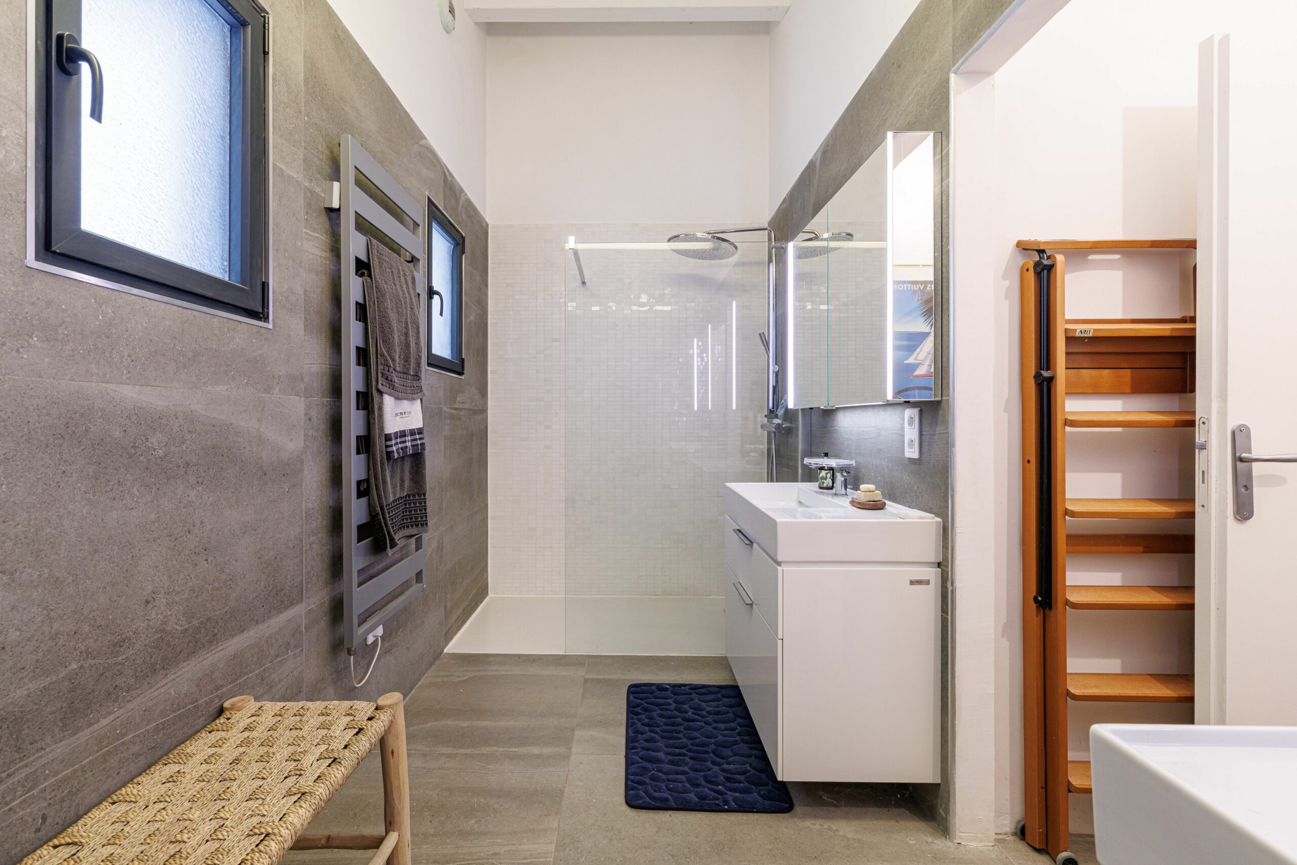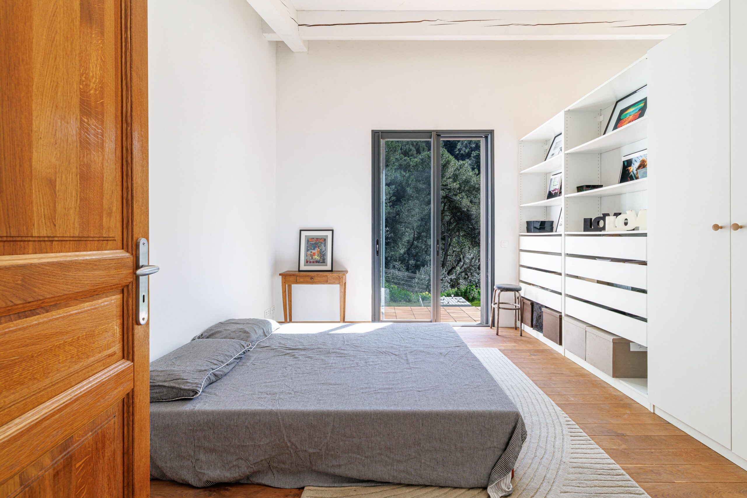 L’espace nuit se compose de trois chambres revêtues de parquet en chêne massif, d’une salle de bains avec double vasque, baignoire et douche à l’italienne, ainsi que d’un WC indépendant.